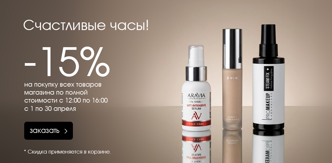 с 12:00 по 16:00 скидка 15% на покупку всех товаров магазина по полной стоимости.